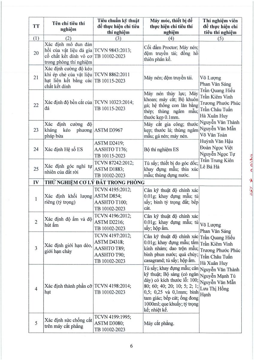 - Tên phòng thí nghiệm: Trung tâm Thí nghiệm Địa kỹ thuật và Vật liệu xây dựng